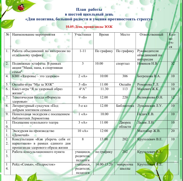 План работы педагога-психолога на 6 школьный день 2 полугодие 2025/2026 учебный год