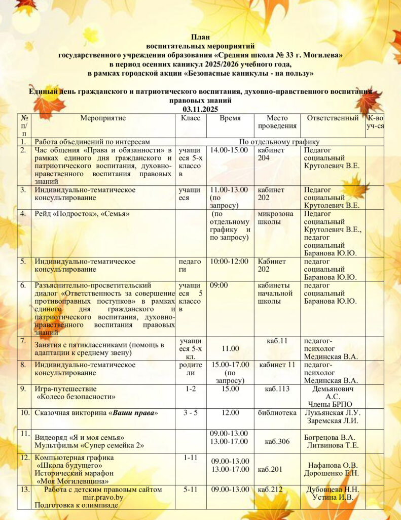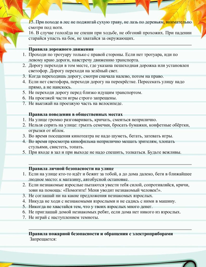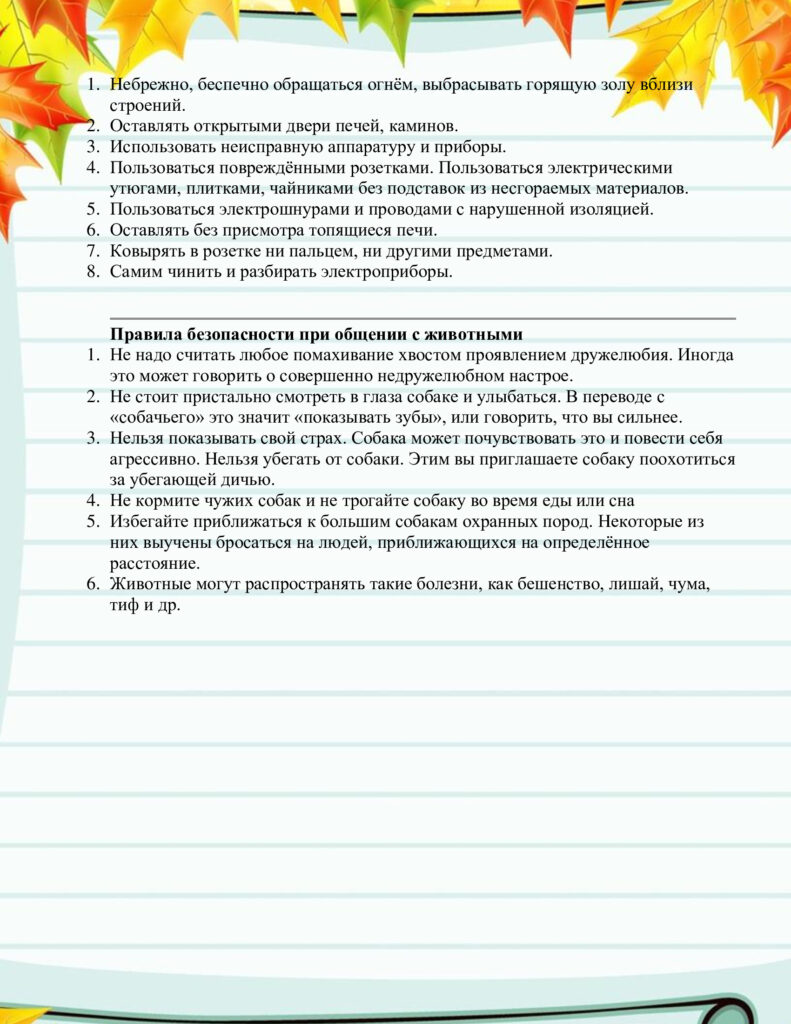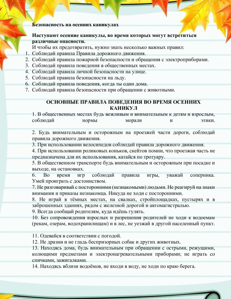 Безопасность на осенних каникулах