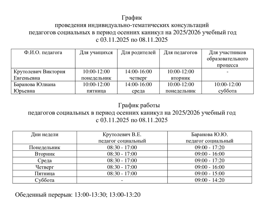 График работ и проведение консультаций с социальными-педагогами