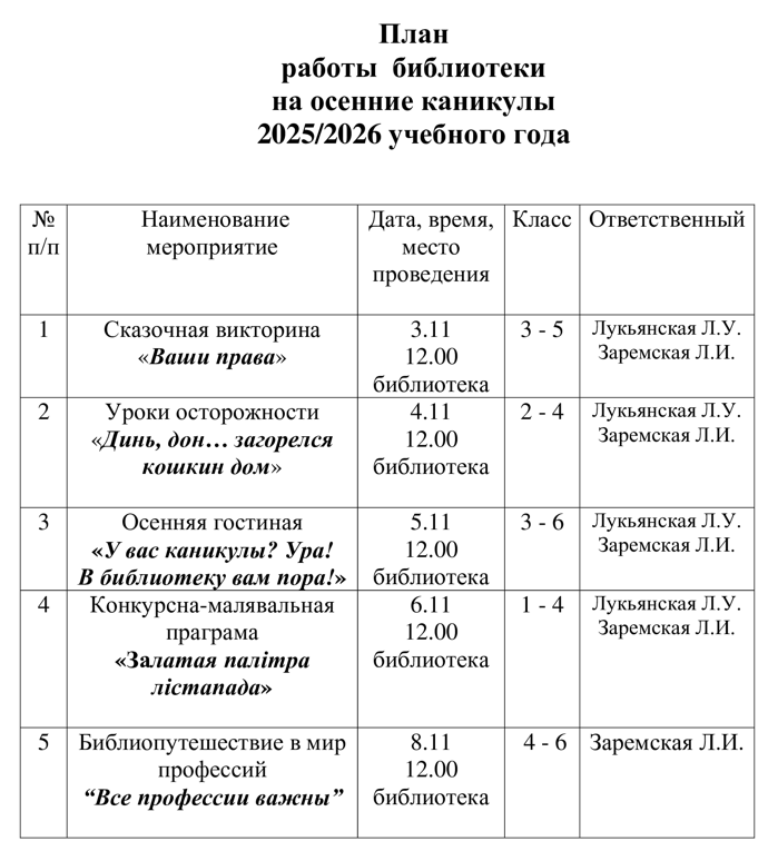 План и график работы библиотеки