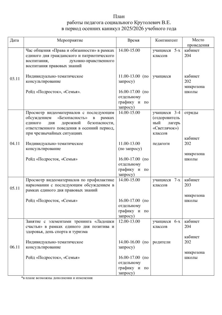 План осень 2025