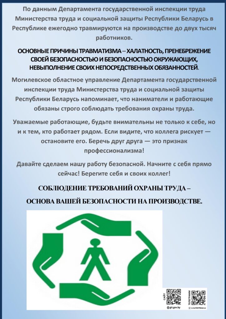 – соблюдение государственных нормативных требований охраны труда, содержащихся в актах законодательства Республики Беларусь, технических нормативных правовых актах;