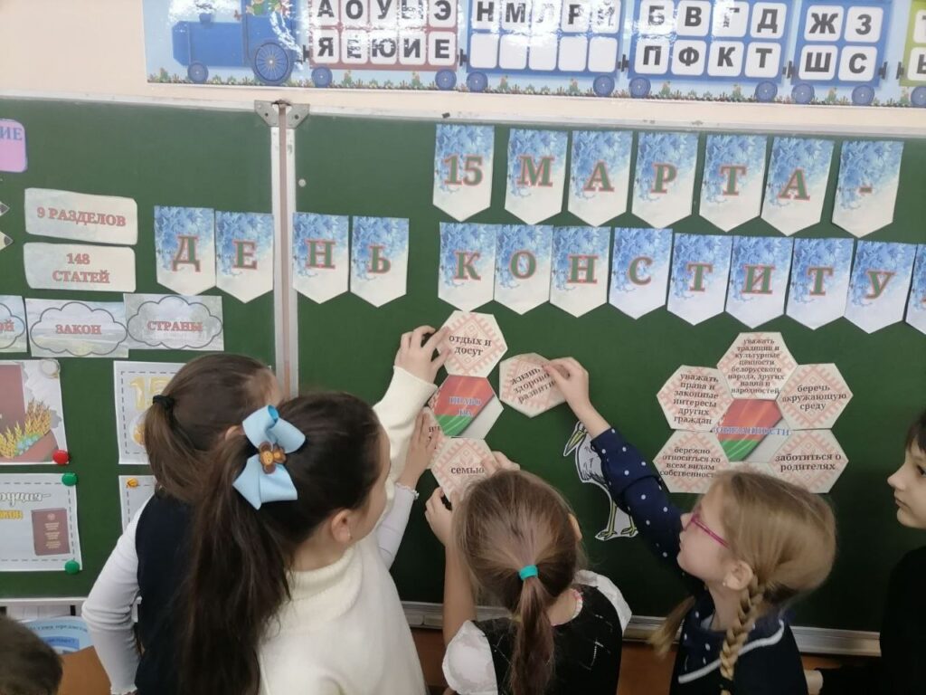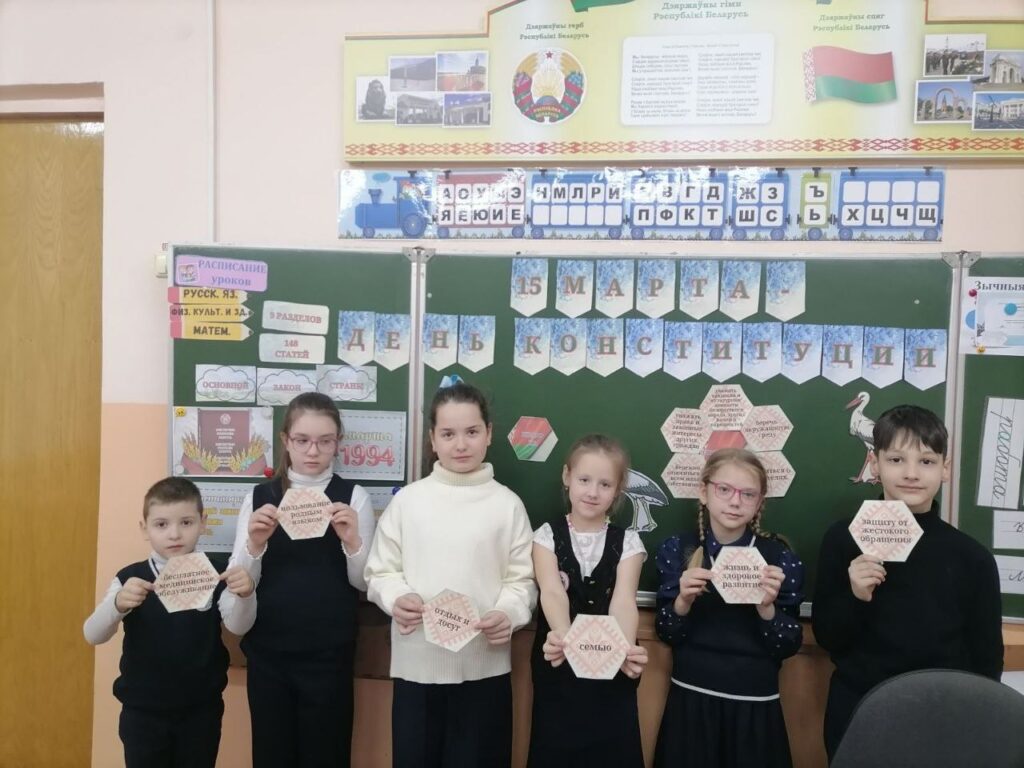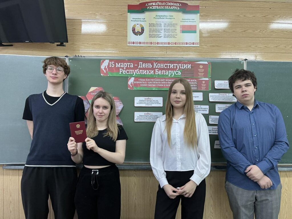 14 марта в нашей школе прошли единые уроки, в ходе которых были актуализированы знания учащихся об Основном Законе страны, акцентировано внимание на историю создания и изменения в Конституции Республики Беларусь.