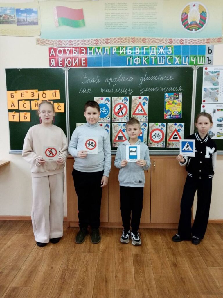 25 марта в 4 «Г» и в 4 «Б» прошло мероприятие «Знай правила движения как таблицу умножения.» Целью проведения мероприятия было закрепить знания детей о дорожных знаках и правилах дорожного движения. Ребята разгадывали загадки, вспоминали волшебные средства передвижения сказочных персонажей.