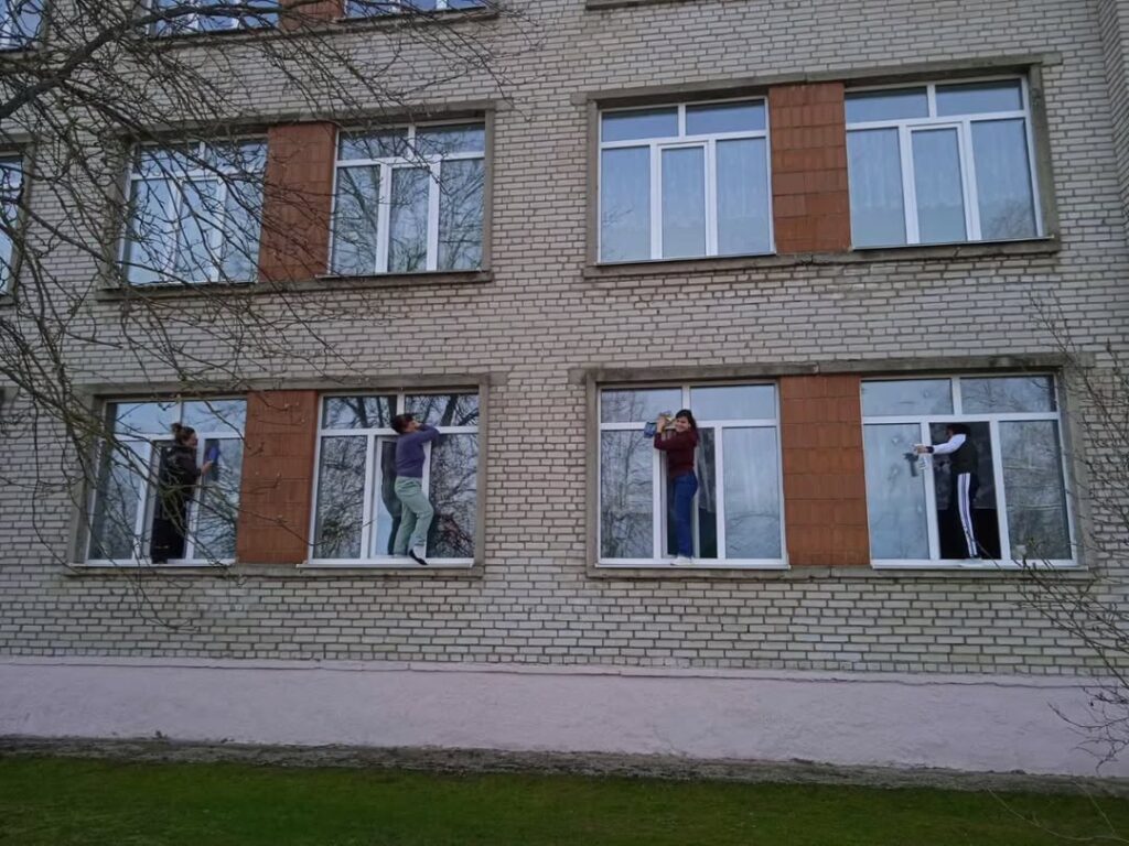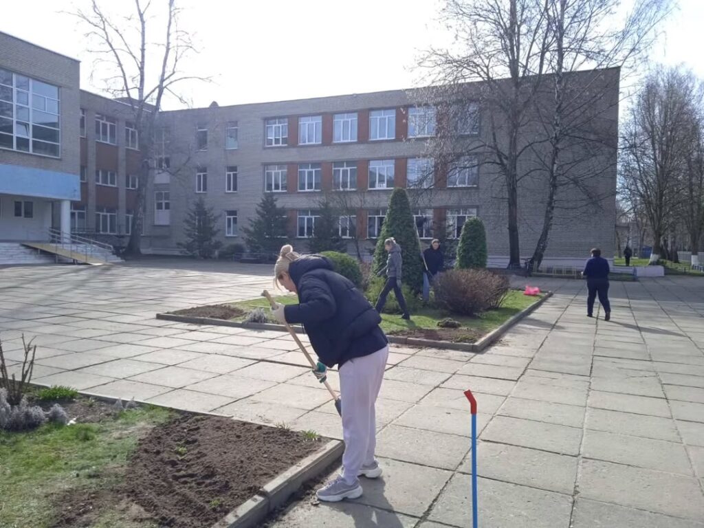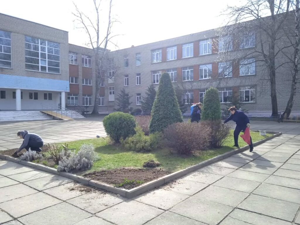 Сегодня в школе прошел весенний субботник. Вооружившись уборочным инвентарем, учащиеся и педагоги навели порядок на территории школы. Была проделана большая работа по уборке опавшей листвы, приведены в надлежащий порядок цветочные клумбы вымыты окна.