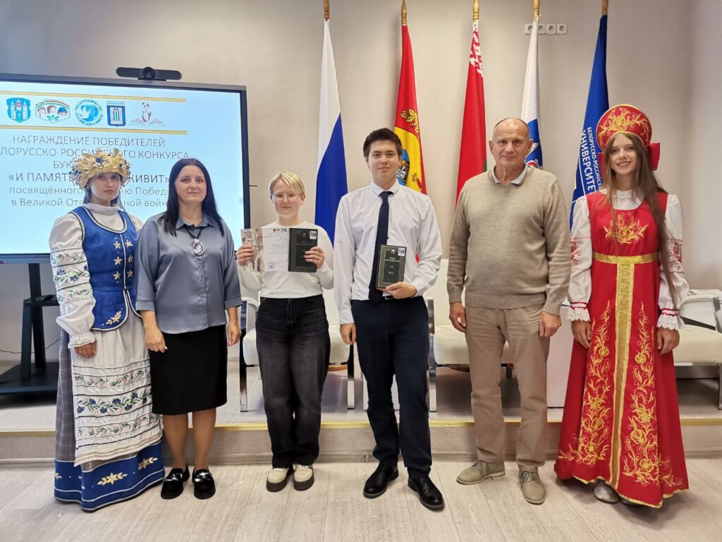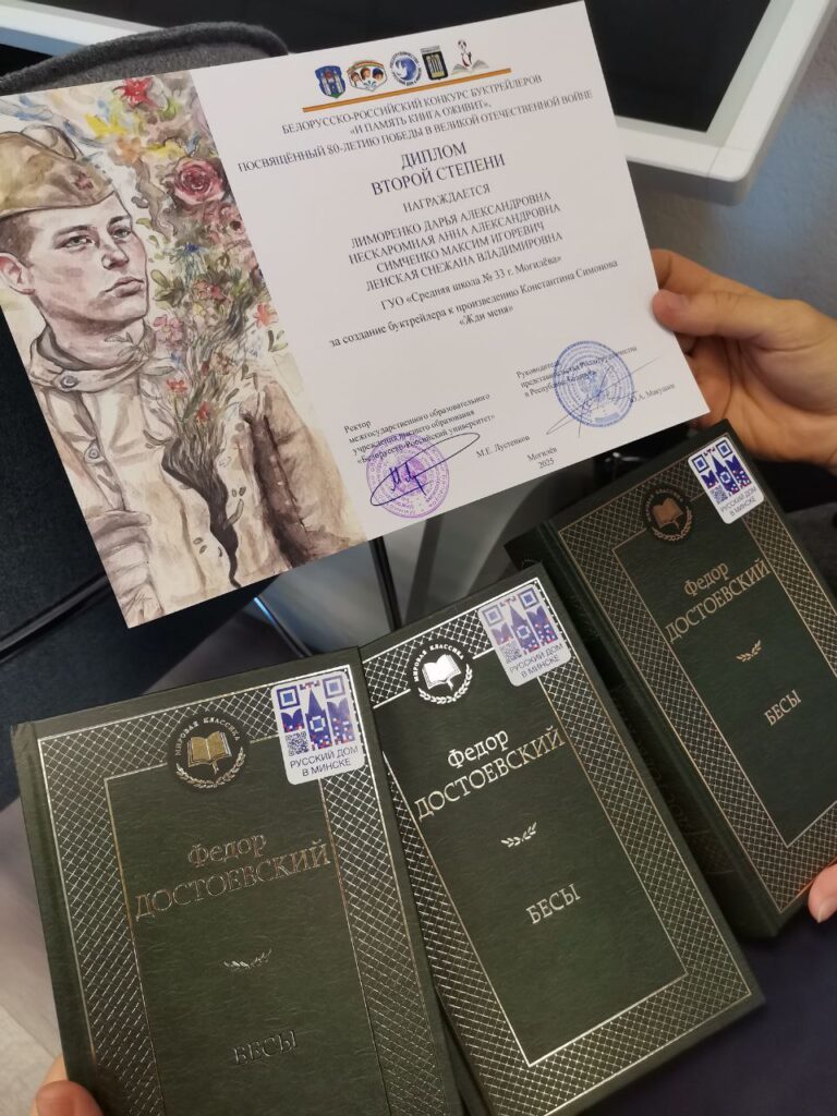 24 сентября на торжественной церемонии награждения победителей белорусско-российского конкурса буктрейлеров «И память книга оживит», посвященного 80-летию Победы в Великой Отечественной войне, наши учащиеся и их куратор Ленская С. В. удостоены награды — дипломом II степени.