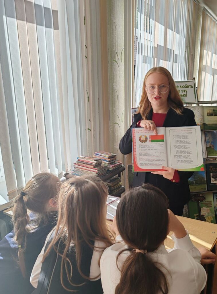 24 сентября учащиеся 2″В» и 3″А» классов посетили мероприятие в школьной библиотеке, посвящённое родной Беларуси. Загадки, викторины, ребусы и, конечно, главная песня нашей страны исполнялись ребятами осознанно и с большим энтузиазмом.