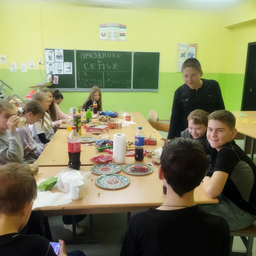 25 октября состоялся круглый сладкий стол с учащимися 6 в и 6 б класса на тему «Праздники в семье». Ребята с удовольствием поделились своими семейными традициями праздников и сами повесились на славу