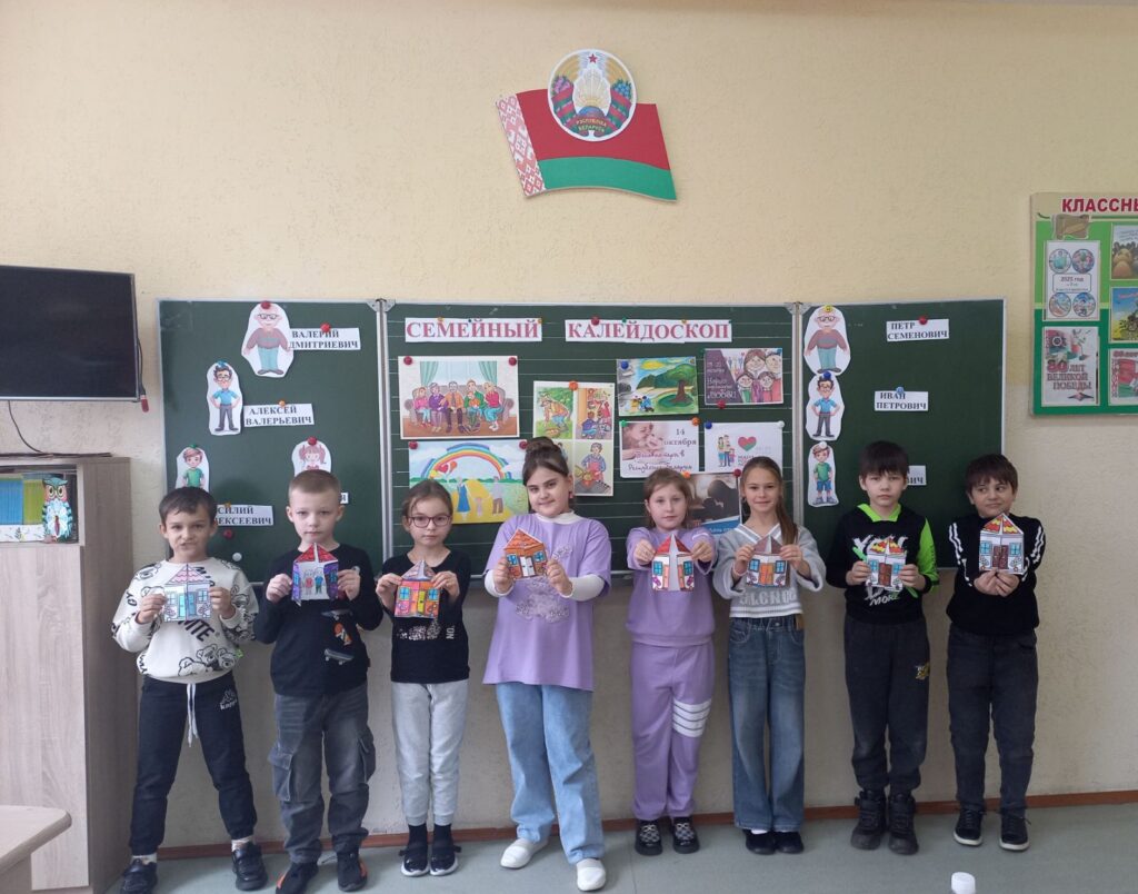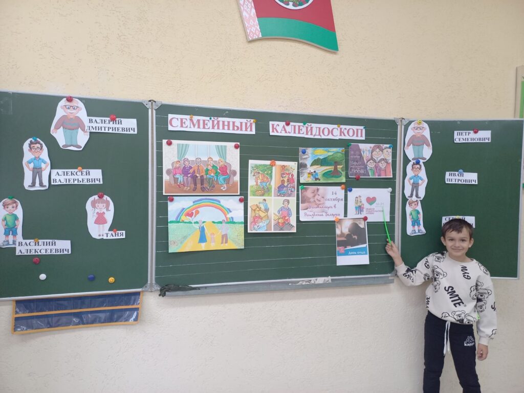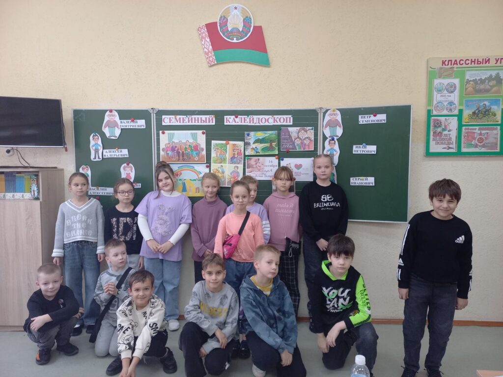 25 октября, в шестой школьный день, в 3 «Б» и 3 «В» классах прошло мероприятие «Семейный калейдоскоп». Учащиеся разгадывали кроссворд на данную тематику, отвечали на вопросы викторины, смотрели мультфильм, делали поделку. Дети пришли к выводу, что семья — это самое дорогое, что есть у человека.