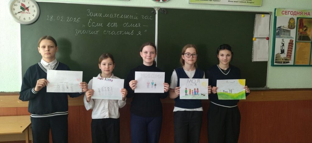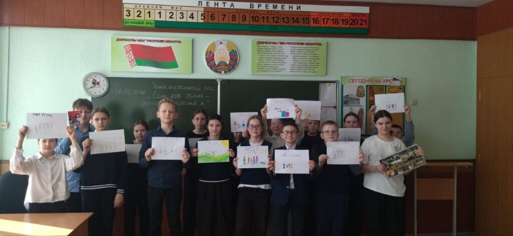28 февраля учащиеся 6 «Б» класса приняли участие в занимательном часе «Если есть семья, значит счастлив я». Во время мероприятия ребята рисовали свою семью и рассказывали о самых близких людях.