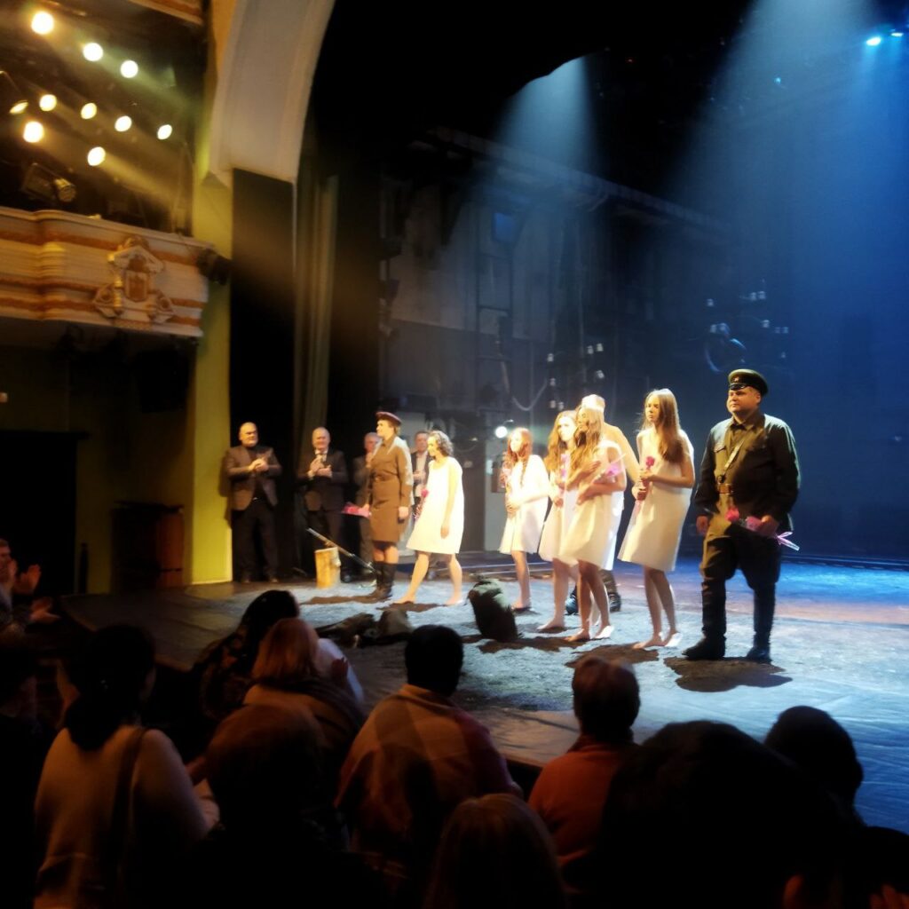 4 марта 6 «В» класс в рамках уроков эстетики посетил постановку Могилёвского драмтеатра «А зори здесь тихие» по произведению Б. Васильева. Для некоторых поход в театр был впервые. Сама же постановка патриотического произведения никого не оставила равнодушным.