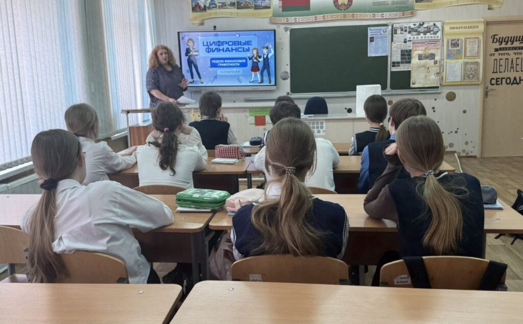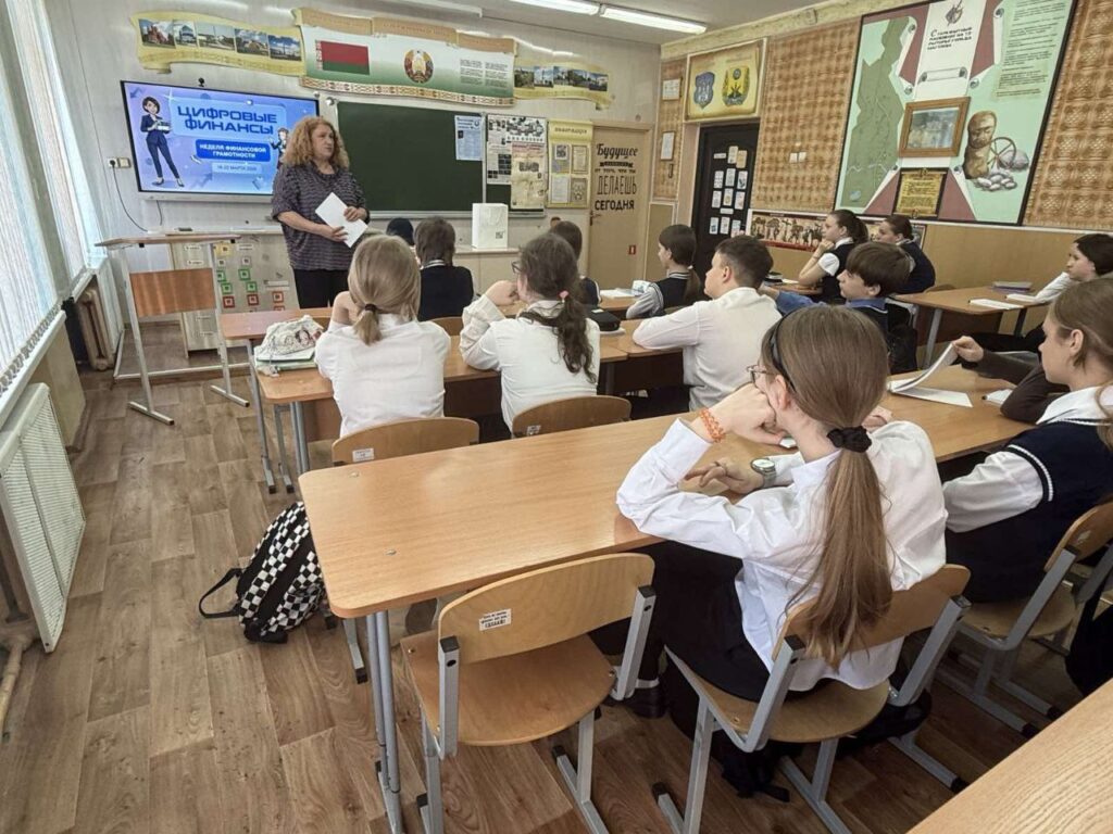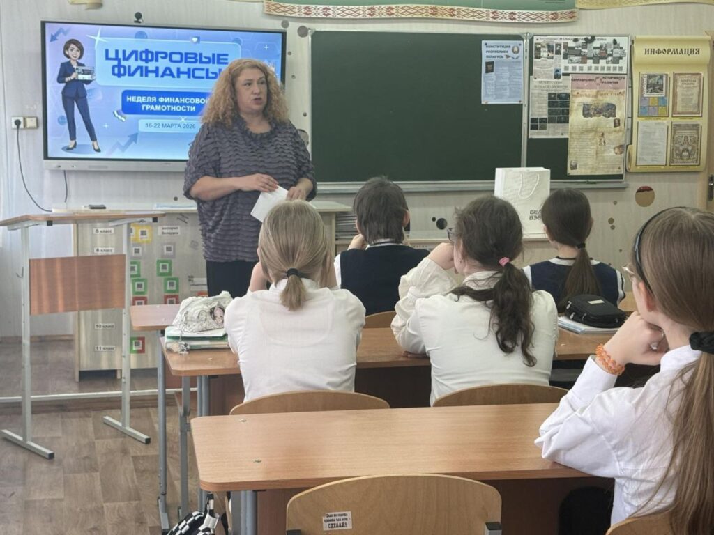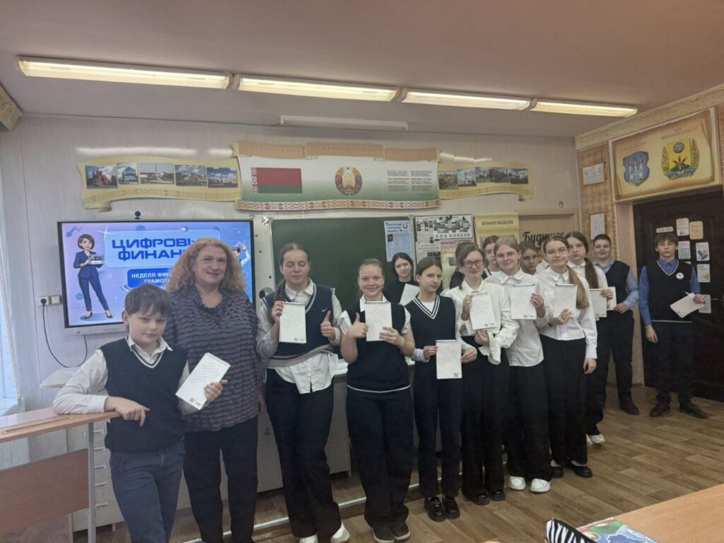 16 марта в рамках Недели финансовой грамотности в 7 «Б» классе прошло мероприятие «Цифровые финансы», которое провела Чернова Анжелика Ивановна, заместитель управляющего-начальник отдела клиентского сервиса Сервисного офиса 600 ОАО «Банк Бел ВЭБ». В ходе мероприятия ребята узнали много интересного и повысили свой уровень финансовой грамотности.